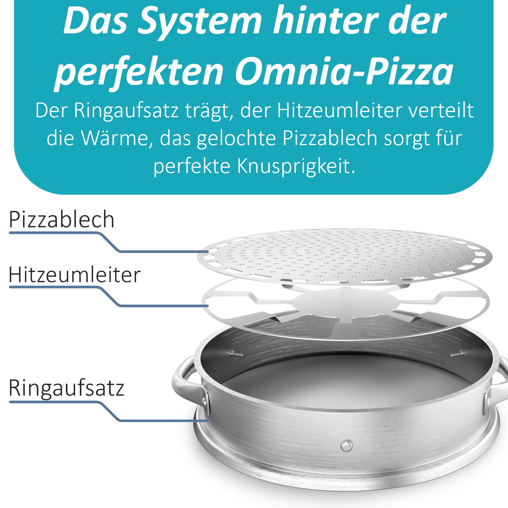 Pizzaaufsatz (NEUE VERSION) kompatibel mit Omnia Camping Backofen – Vollflächiger Backeinsatz aus Edelstahl – Lebensmittelecht – Kein Loch in der Mitte – Für Pizza, Flammkuchen & mehr, Zubehör